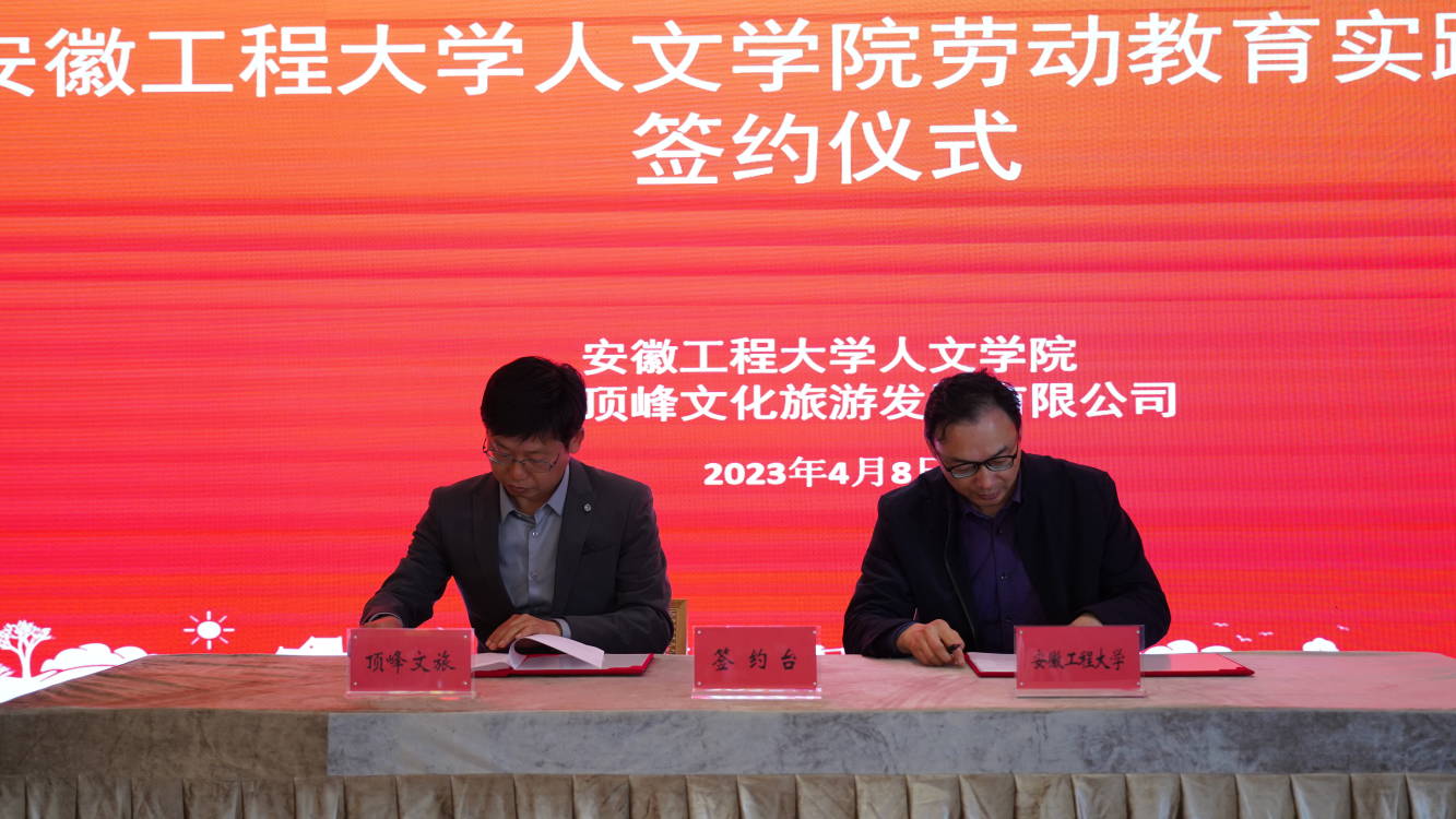 48日上午,我校人文学院与顶峰文旅发展有限公司就共建劳动教育实践基地签署协议并进行授牌。人文学院院长、人文素质教育中心主任刘军,鸠兹湾艺创共富乡村项目经理朱新根参加签约授牌仪式。根据协议,双方将在课程体系建设、实践教学建设、指导教师培训等方面开展合作,创新校地合作模式,实现共建共享共赢。